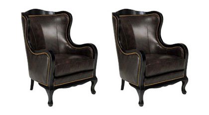 BUY THE SET OF 2 AND SAVE .00! Bryce Leather Accent Chairs w/ Decorative Wood Trim measure W29" x D35" x H40." Available in 20 distinct leather colors and 2 leg color choices. * Seat Height 19"/Arm Height 24" * Select Kiln Dried Hardwood Frame * 100% Top Grain Leather * True 8-Way Hand Tied Springs * Gracious 23" Seating Depth * Tightback Design * Carefully Hand-Crafted In N.C..../ Bryce "Designer Style" Leather Accent Chair w/ Decorative Ebony Wood Trim: Set Of 2 Bryce "Designer Style" Leather Accent Chairs w/ Decorative Wood Trim / leather armchair